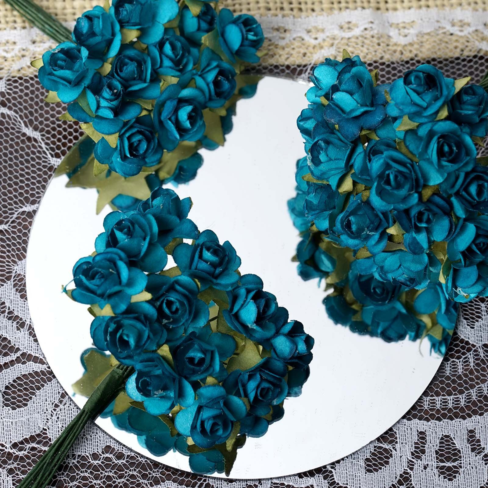 Buy 144 Turquoise Paper Mini Flower Roses