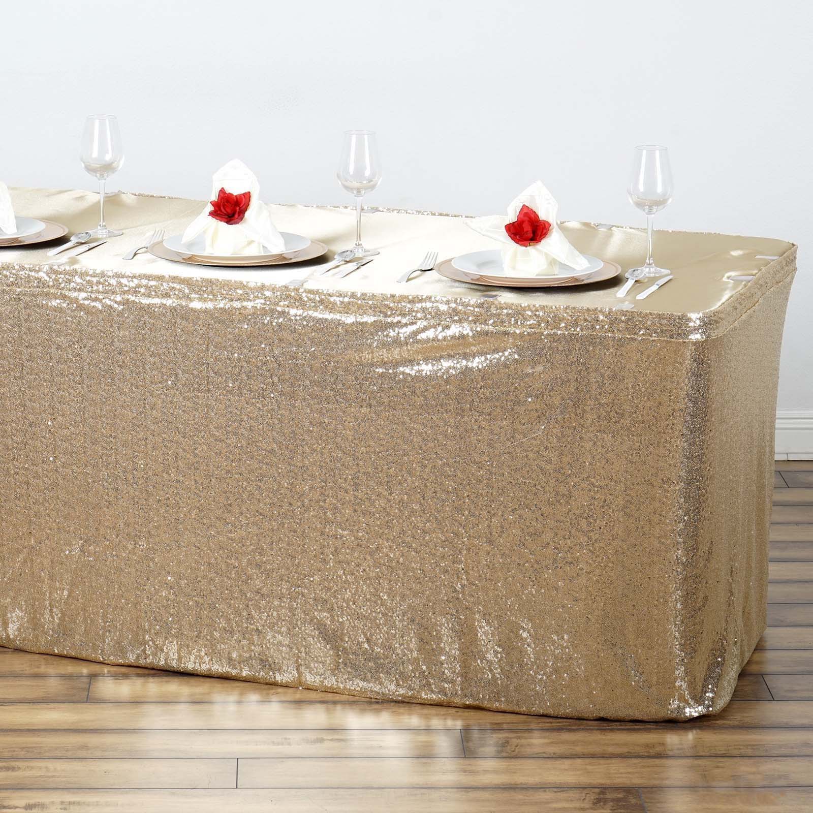 Buy 14FT Champagne Glitzy Sequin Table Skirts