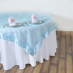 Buy 60"x60" Light Blue Satin Edge Embroidered Sheer Organza Square Table Overlay - Pack of 1 Overlay