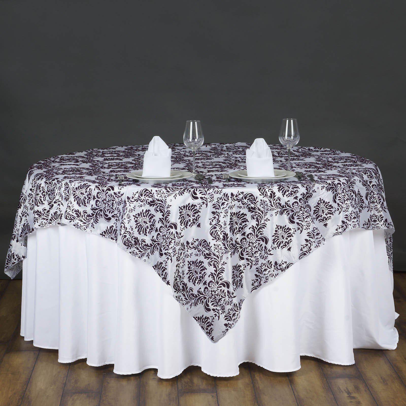 Buy 72" x 72" Chocolate Damask Flocking Tablecloth Overlay