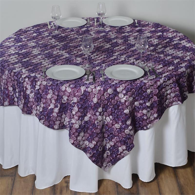 Buy 72" x 72" Eggplant Satin Mini Rosette Square Overlay