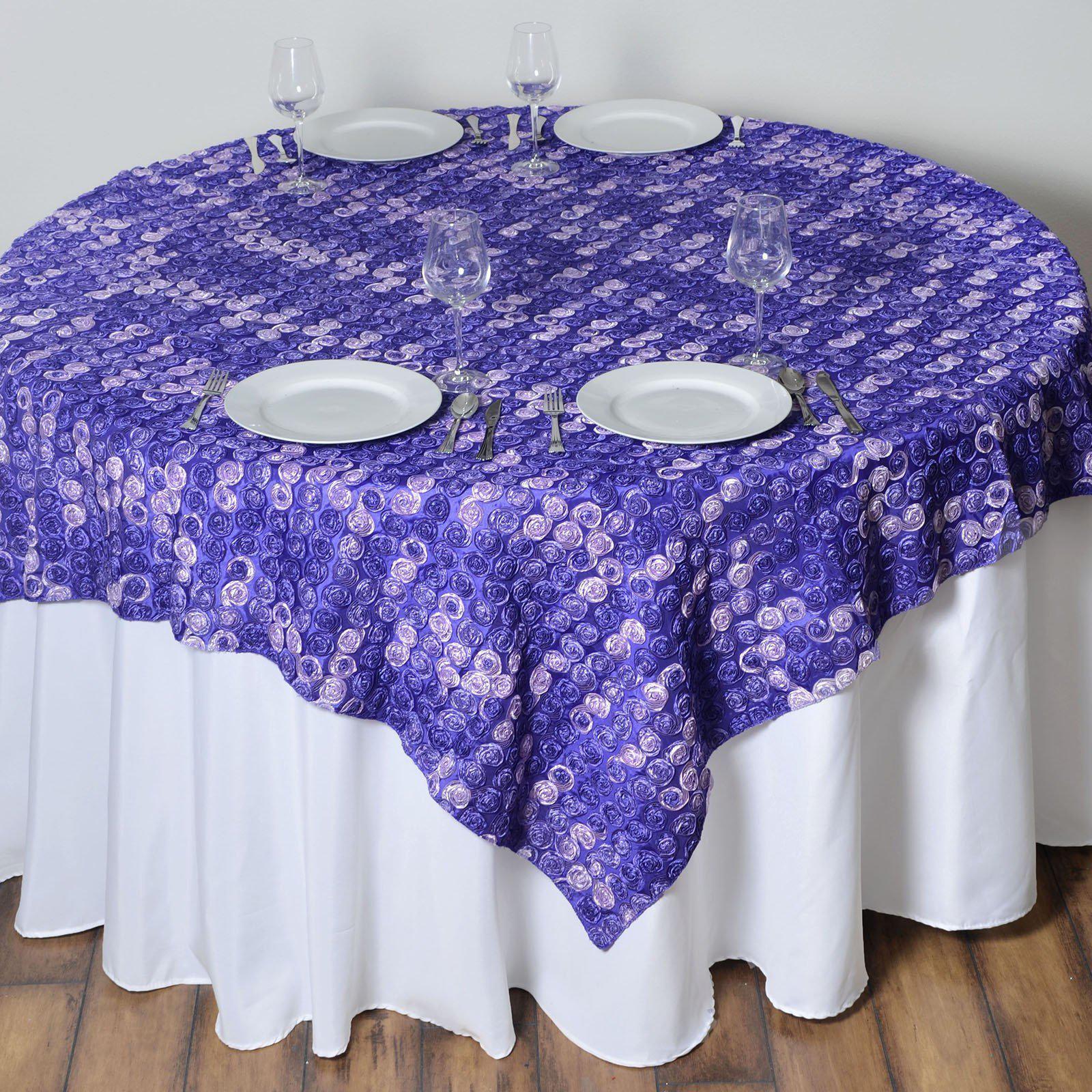 Buy 72" x 72" Purple Satin Mini Rosette Square Overlay