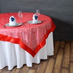 Buy 85" x 85" Red Satin Edge Embroidered Sheer Organza Square Table Overlay - Clearance SALE - Pack of 1 Overlay